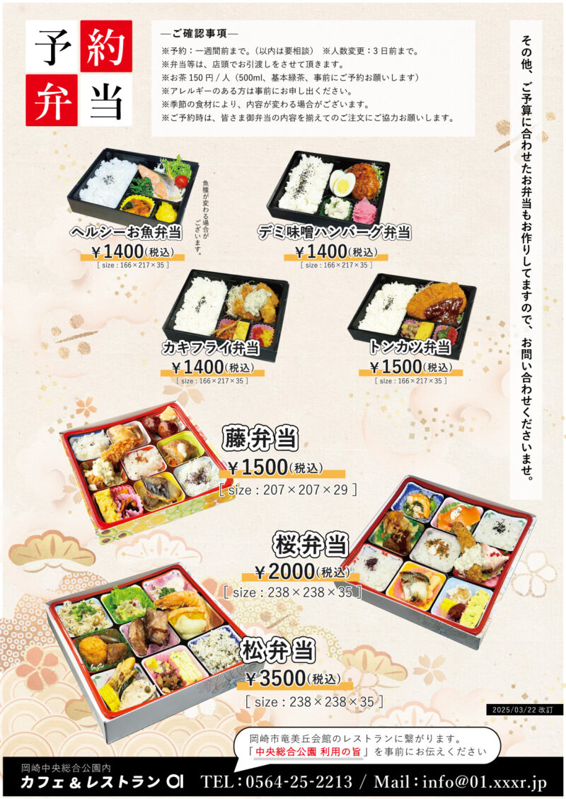 ※ただ今、メニュー改定中につき、内容や価格については、直接お問い合わせください。
